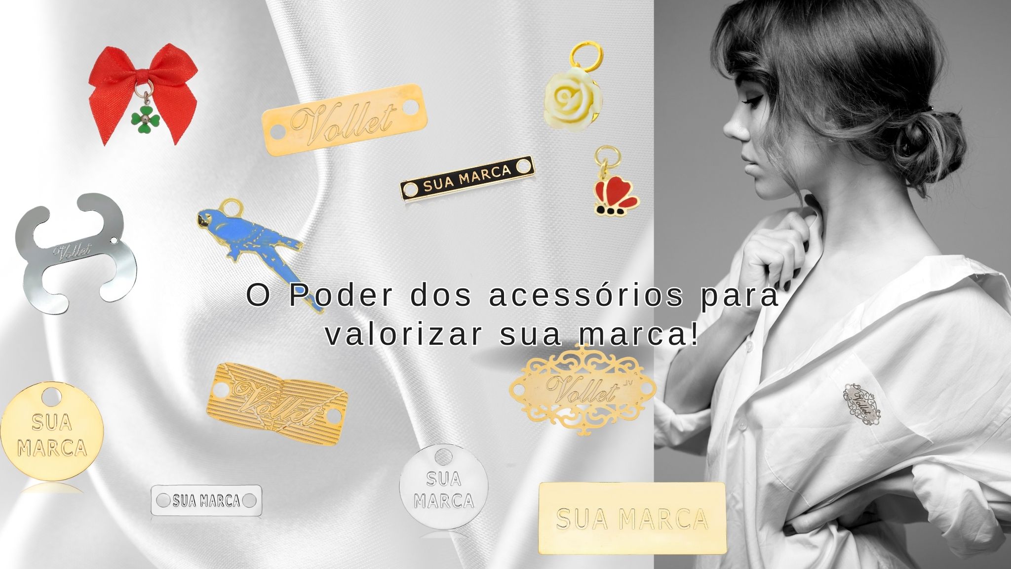 A Vollet busca constantemente lançar novos acessórios para trazer maior valor e beleza à sua marca. Nossa linha de acessórios é ampla, podendo ser utilizada em roupas, lingeries, moda praia, moda infantil, fitness, chaveiros, calçados e demais acessórios metálicos que sua imaginação permitir. Nosso setor de desenvolvimento está pronto para criar e expressar a essência da sua marca em uma linda peça!